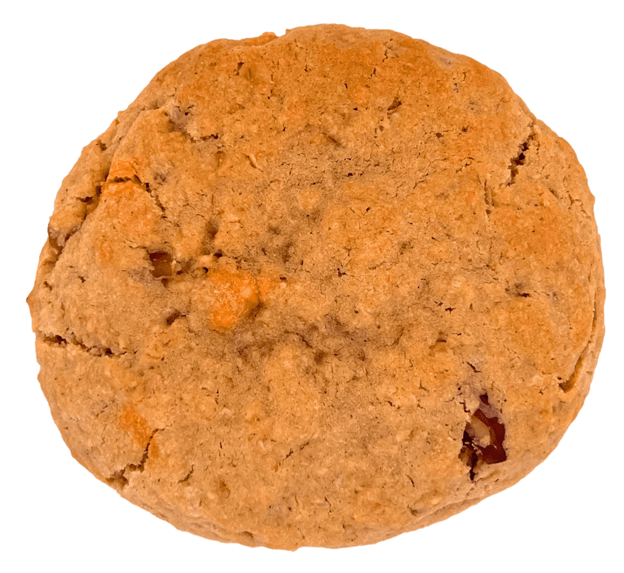 A hearty oatmeal cookie loaded with sweet butterscotch chips, crunchy crushed pecans, and toasted shredded coconut.