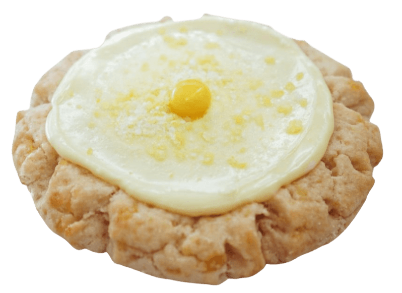 A soft and chewy lemon sugar cookie packed with bursts of Lemonhead candy and finished with a smooth lemon glaze.