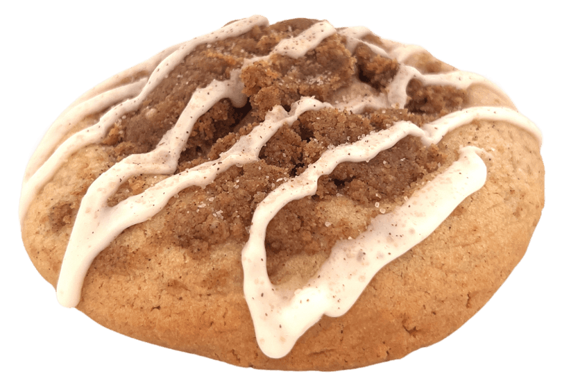 4 soft vanilla cookies filled with rich brown sugar cinnamon, topped with buttery crumb streusel and finished with vanilla glaze.