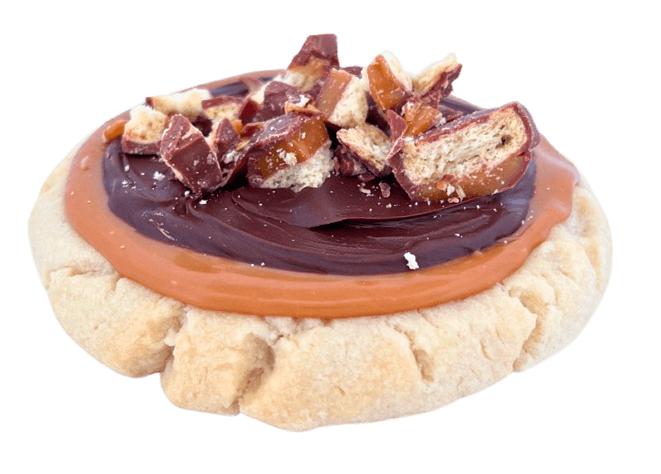 Four of our Monster cookies — a mix of oats, chocolate chips, and colorful candies baked into a thick, chewy cookie. It’s the kind of cookie that feels nostalgic and bold at the same time. Great texture, big flavor, zero apologies.